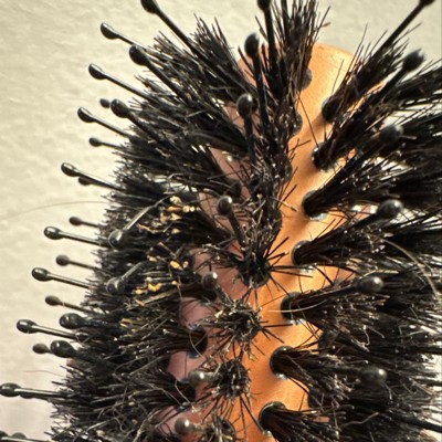 It caught my hair at the top and bottom of the barrel several times while blow drying. It doesn’t glide through the hair, very stiff. It did give my hair tons of shine. But it wasn’t worth the struggle. I got the blow dryer too close to the brush and the bristles actually fried off. I smelt burning hair and I thought it was mine. Nope. It was the singed brush.