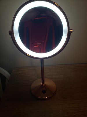 [This review was collected as part of a promotion.] I love this product! It looks lovely on my counter and I love the Rose gold color, it looks nice and sleek. The 10x's magnification shows all my tiny hairs that need to be plucked that I'm not able to see in the regular mirror. The LED is nice and bright and really illuminates my face. A wonderful mirror for make-up application and eyebrow trimming/plucking. I received this as a free product in order for my review. I would definitely purchase this product for a family member and would make a great gift for the holidays and or Birthday.