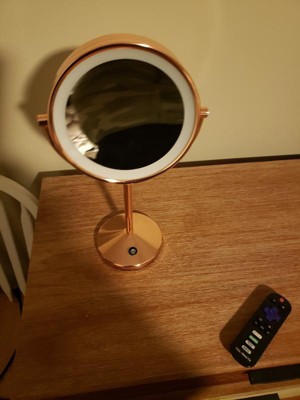 I recently bought this makeup mirror and I really like it. I especially like not dealing with an electrical cord. Battery operated is great and able to travel easy. The rose gold color is very attractive and looks good on my makeup table.
