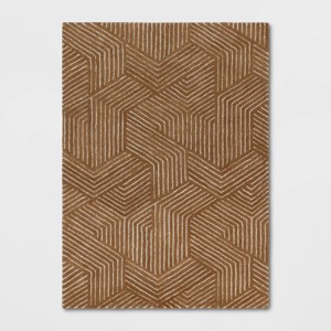 A: The rug features a concentric geometric pattern, adding a modern touch to any room.