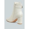A minimalist flair affair, the boots have a chic and sophisticated demeanor, a classic and clean look, and just a touch of elevation with the buckle belt embellishment on the collar. The block heel boots are perfect for workwear with the comfortable cushion insoles, ideal for daily wear! Type: Boots Upper Material: Faux Leather Outer Sole: TPR Closed Pointed Toe Block Heel Buckle Belt Embellishment Zipper Closure Comfortable Cushion Insoles Heel Height: 3 inches SH5068