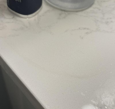Stained my quartz countertop and has a weird chemical smell