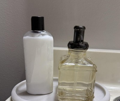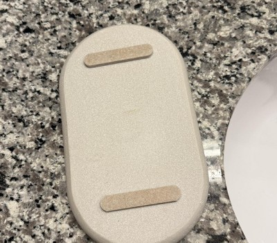 I really like this tray. It’s simple but sturdy and pairs nicely with my bathroom decor. Here’s a tip: place felt pads on the bottom of the tray to give it a little lift and to prevent water from getting trapped underneath. This will prevent staining to your granite countertops.