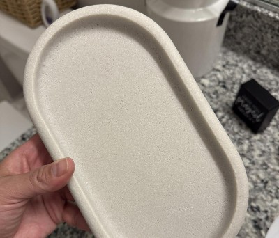 - Neutral-hue bath tray