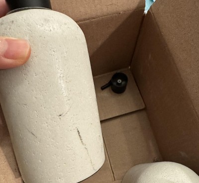 I love this dispenser. It’s really pretty and I like that it is not fragile, since it’s resin. The packaging was terrible. I ordered two and for the first time with target, there was zero protective packaging in the box. So both were damaged— the dispensing part was broken off and the resin material was stained with black marks because they were rolling around on each other. I tried cleaning the marks off with soap/water and a magic eraser. Neither worked that well. I received replacements and the same thing happened, so I returned all of them. I’ll be ordering one at a time to see if it arrives in tact.