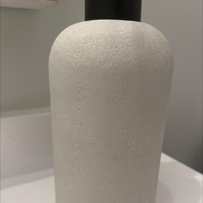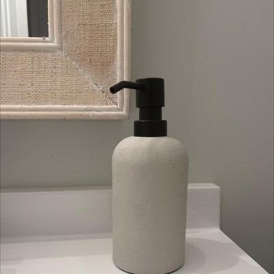 Add a sophisticated look to your bath space with the Concrete Resin Collection Soap Pump from Threshold™. This white soap bottle comes with a black pump for an appealing contrast. Made of concrete resin, this soap pump is compatible with gel soaps, lotion and dish soaps.