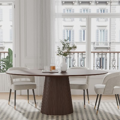 - This oval dining table combines tapered design with a bold black accent, creating a contemporary centerpiece for any dining area