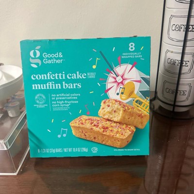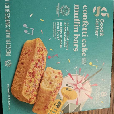 Perfect for busy mornings, school lunches, or any time you crave a sweet bite, these Confetti Cake Naturally Flavored Muffin Bars from Good & Gather™ pack the deliciousness of a fresh-baked muffin into a convenient bar form. With bright confetti cake flavors and ingredients, no artificial colors or preservatives, and no high fructose corn syrup*, they're a great on-the-go snack for the whole family.