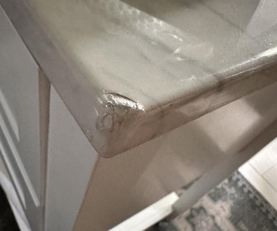 I love the size of the island! It looks nice and was fairly easy to assemble with two people. The top was the last piece to go on and we didn’t notice until we were putting it on that one of the corners was badly damaged. Partly our fault for not noticing, but didn’t want to have to return after assembling the whole thing. The island also has a fairly strong chemical odor. I do love the storage and functionality though. I used some rub n buff to change the color of the handles to match my other cabinet hardware.