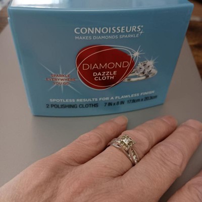 [This review was collected as part of a promotion.] Connoisseur Diamond Dazzle Polishing Cloths, 2 count is a great product. It comes with 2 polishing clothes. It's really easy to use. I cleaned my rings with one, and they came out beautiful, sparkling, and clean. You don't realize how dirty your rings are until you clean them. It's a perfect sized polishing cloth. I'm really impressed how great they look.#Connoisseurdiamonddazzlepolishingcloths#Influencer