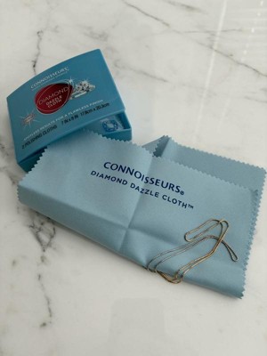Make your jewelry sparkle with this Connoisseurs Diamond Dazzle Cloth Set. This two-piece set includes two ultra-soft polishing cloths that provide precision, lint-free polishing to restore brilliance to your favorite pieces. Recommended for gemstones and safe for all surfaces, these specialized cloths gently remove tarnish, fingerprints, and buildup without scratching or damaging delicate jewelry. Whether you're maintaining everyday earrings or necklaces or doing quick touch-ups on your most precious pieces, these cloths are an ideal cleaning option.