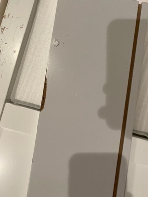 Really nice table! The white is bright and pretty. It all arrived without any dings or scratches. It’s heavy and sturdy- not that thin particle board material. Simple instructions and easy to assemble. Looks beautiful in my entry way!
