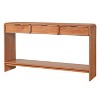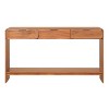 This piece brings timeless charm into your home with its inviting retro style and classic natural finish. Accented by polished silver drawer handles, it delivers a sophisticated yet warm character that harmonizes effortlessly with a variety of interior décors. Beyond its looks, it offers thoughtful organization. Two smooth-gliding drawers keep smaller essentials like keys or trinkets neatly tucked away, while the generous lower shelf—measuring nearly 59 inches in length—provides ample room for books, decorative baskets, or your favorite display items. Crafted with attention to detail, the sturdy construction is highlighted by artistic metal accents that introduce a subtle contemporary edge, enriching the overall aesthetic. With its practical proportions, this versatile console fits perfectly in entryways or hallways, offering a space-saving solution that beautifully merges form and function.