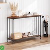 - Slim profile—41.3" L × 11.8" D × 31.8" H—slides neatly behind sofas or along entry walls, adding surface space without narrowing walkways.