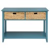 From your grand entryway to your living room or dining area, this Teal Console Table from Acme Furniture makes a stylish and functional addition to any space. Built with a sturdy wood frame in a pretty teal finish, the beautiful storage console table will add a fun pop of color to your decor while offering ample storage space with the two pull-out drawers. Display a table lamp or houseplant on top and use the bottom for books, a vase or other decorative pieces.