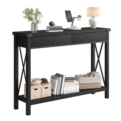 Console Table with 2 Drawers, Wood Entryway Table with Storage Shelf, Sofa Tables Narrow Long for Living Room, Entryway, Hallway, Foyer