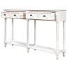 This classic accent table fits perfectly in any living room. Constructed with a solid wood frame and legs with a beautiful distressed finish. It is ensured to be stable, strong and requires low maintenance through long years of use. Features two big drawers, this occasional console sofa table helps you to organize your living room necessities, keeping them dust free. What a stylish piece of console table set to elevate your living room or foyer entryway space!