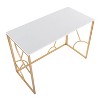 With its pleasant design and modern lines, the Constellation Desk by LumiSource is a unique statement in any office space. Featuring a geometric gold metal frame and a black or white wood top. Modern elegance at its finest, the Constellation Desk will work great as a desk or vanity table!