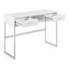 - Engineered wood top with two drawers for concealed storage and an extra nook for easy access