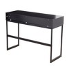 - Engineered wood top with two drawers for concealed storage and an extra nook for easy access