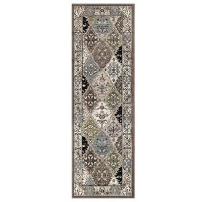 The floral and geometric pattern was quite pleasing for my foyer area. The colors complimented my wall colors quite nicely. The rug is constructed well making it resistant to snags. As a bonus, my puppy finds it to be quite comfortable. Overall, I am very pleased with the look it provides for my front entrance!
