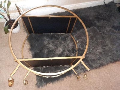 - •This 2-shelf bar cart accentuates rectangular shelves with circular side frames