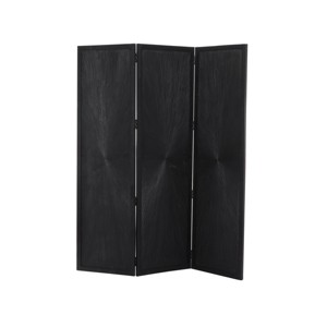 Add beauty and depth to your splendid living spaces as you divide your areas with this 3-panel wooden divider that blends well on bold-toned and muted backgrounds. This item ships in 1 carton. Suitable for indoor use only. This item ships fully assembled in one piece. Made in India. Item features 3 panel screens. This is a single black colored folding panel partition. Contemporary style.