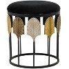 - •Round black metal stool features gold embossed feather detailing in an open frame structure, and complemented with soft upholstered linen top that provides a comfortable resting spot for feet