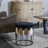 Complement your living room or bedroom furniture with this black metal stool with other gold metal decor and linen sofa for an elegant atmosphere. This item ships in 1 carton. Suitable for indoor use only. Maximum weight limit is 17 lbs. This is a single accent table. Contemporary style.