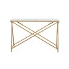 - •A bold "X" trestle legs in chic gold supports the marbled top that brings an opulent touch to this console table