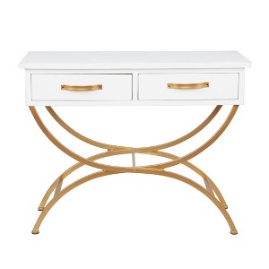 Contemporary Pine Console Table White - Olivia & May: Gold Frame, 2 Drawers, Sturdy Build, No Assembly Required
