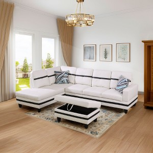 - Modern Aesthetic: This contemporary white leather sectional sofa features a sleek design with black accent stripes, adding a touch of sophistication to any living space