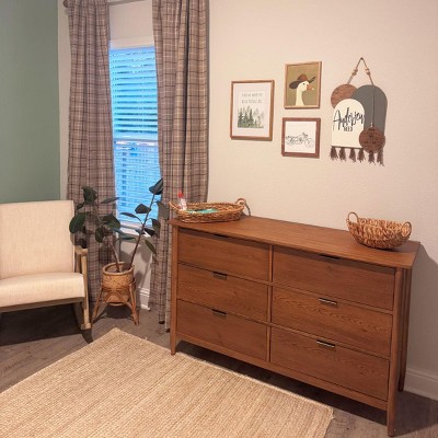 Contemporary Wooden 6-Drawer Horizontal Dresser - Aged Oak - Hearth & Hand™ with Magnolia