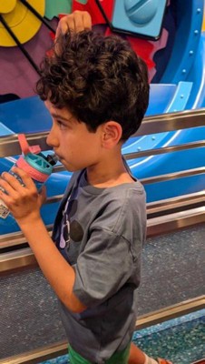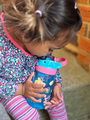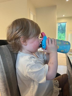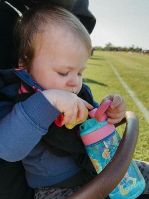 - Kids enjoy an easy one-handed drinking experience at the push of a button