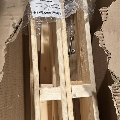 A: wood width is 2.5", slat spacing depends on the size from 4" to 4.5"