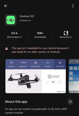 A: Hi, thanks for reaching out about Contixo F22 Drone Wi-Fi, GPS Auto Hover Return Home, Camera, 4K FHD Camera - Gesture Control, Custom Flight Path, Follow Me, Carrying Case. That's a very practical question, as the app is necessary for the advanced features of the Contixo F22 drone. The drone is generally compatible with a very wide range of operating systems, but for the best experience, you'll need a relatively modern phone. Here are the minimum required and recommended versions for the Contixo F22 app (often just called "Contixo F22" or "Contixo Drone"): If your phone or tablet is less than 5 years old, you should have no problem running the app. The most critical factor for a good drone experience is your phone's processor and Wi-Fi chip, as they need to handle the real-time video streaming (FPV) smoothly. The newer your device, the better the performance you will get for features like the 4K camera and custom flight path setup. If you have any additional questions, we welcome you to contact MyTGTtech at 833-848-8324 every day, between 7am-11pm CST.