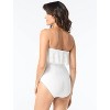 A bandeau one piece is accented with an oversized ruffle trim along the top. Customize your look with detachable, adjustable straps for additional support. Seashell inspired crochet is soft to touch yet water friendly so you can jump into the ocean in style.