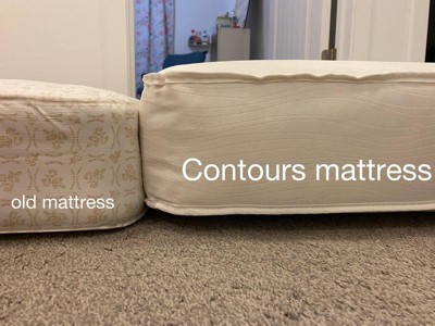 This mattress is very nice quality and is comfortable! I have included a picture comparing the thickness of this mattress to our old mattress, which we have used for two babies and love. This Contours mattress is noticeably thicker. I prefer the softer "toddler" size and had a hard time discerning which was which...turns out the tag on the mattress will tell you. My two year old likes the vibrations and asks for it to be turned on as soon as we lay her down. I have noticed that she has been falling asleep faster and with less fuss for nap time, but she has been waking up sooner, and I can't help but wonder if it's because the mattress is still. The remote has a timer setting but the highest is 45 minutes. The vibration setting is your generic vibration you find in many baby devices, which was a little disappointing for the price of this mattress. It radiates from the battery compartment on the side of the mattress. I try to stay away from sleep props but would be very curious to try this on a baby/toddler that wakes during the night. I would absolutely try this mattress with an infant to help soothe during night wakings while sleep training. The remote with a handle is brilliant.