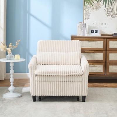Convertible Beige Velvet Sleeper Accent Chair Bed, 3-in-1 Pull-Out Sofa Bed with USB Port, Phone Holder and Side Pockets for Small Spaces - Koiai