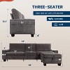 Elevate your living space with our Chenille 3-Seater Sofa, complete with a storage ottoman and ample hidden compartments. Measuring 38.5'' H x 112'' W x 32'' D, this modular sofa maximizes both comfort and organization. The spacious storage areas under the sofa and ottoman (34.5" x 26" x 7" and 26" x 26" x 8") provide the perfect solution for stashing blankets, pillows, or toys, helping you maintain a tidy, modern home. Whether you're entertaining guests or simply enjoying some quiet time, this sofa blends style with function, offering a cozy seating experience and smart storage in one.