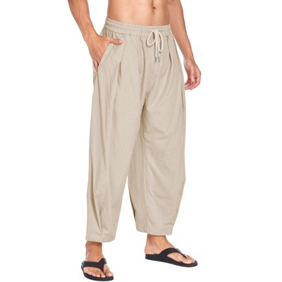 • Various colors for you to choose from. These men's linen harem pants can be easily paired with a casual T-shirt and sneakers to create a casual look, or paired with a beach shirt and sandals for a vacation style.