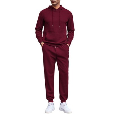 • FEATURES: Mens 2 piece athletic tracksuits:long sleeve pullover hoodie sweatshirt with 2 side pockets,drawstrings,ribbed hem and cuffs and a zippered pocket on left arm; Pants with full length, 2 side pockets, gathered ribbed ankle, elastic waist design with a drawstring to maintain high performance in sports.