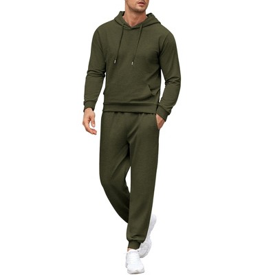 • Men's tracksuit set including hoodie and sweatpants. Solid color drawstring hooded pullover with kangaroo pocket; pants with adjustable drawstring, 2 side pockets for you to carry keys, cell phone and other small items etc