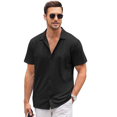 COOFANDY Mens Short Sleeve Shirts Casual Button Down Shirts Summer Beach Shirt Wrinkle Free Black XL