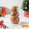 Add a festive sparkle to your holiday decor with this large, plastic snowman container, beautifully topped with a shiny gold metal lid. Designed in the shape of a classic Christmas tree, this elegant storage piece is perfect for holding candies, cookies, or holiday snacks. Its clear plastic body lets you display colorful treats while keeping them fresh and easily accessible. The sturdy gold lid adds a touch of sophistication, making it both a decorative accent and a functional storage solution. Perfect for kitchen counters, dessert tables, or gift giving, this snowman container brings style and cheer to any holiday setting.