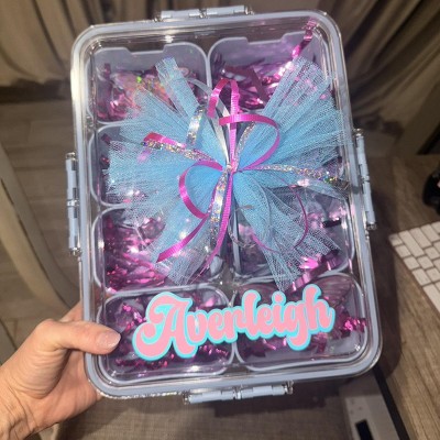 I bought this to use as a gift for my Mom. I plan on filling it with a bunch of different candies that she loves. The container itself is really cute with the glitter and pink containers. I wish I bought one for myself. lol