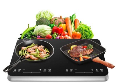 COOKTRON Portable Double Burner Quick-Heat Electric Induction Cooktop w/Booster Mode, Timer, 10 Temperature Levels, 9 Power Levels & Child Safety Lock