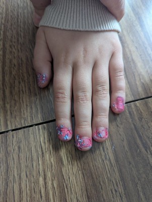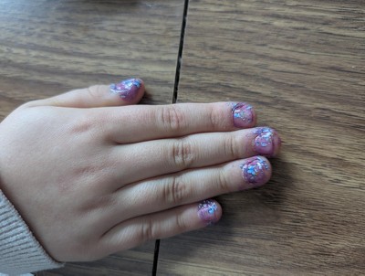 This has to be the biggest false advertisement I've ever seen in a toy. The concept was a cute idea - I'll give them that. But the execution? holy cow. My daughter's nails look like her 2 year old sister did them! Expect the polish to be on the nails and the skin! This is a $26 toy?! save your money and go to the nail aisle and get some polish, paint those pretty nails and find some nail stickers. Saved you money, a headache and a disappointed child - actually mine was still having a fun time but held her nails up at the end and yelled "what a nightmare!" 😜