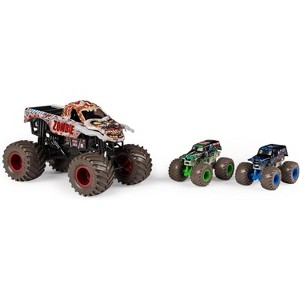 - Includes: 1 of the 1:24 Scale Monster Jam Truck, 2 of the 1:64 Scale Monster Jam Trucks
