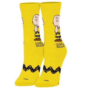 Cool Socks - Charlie Brown Crew Socks - Peanuts Cartoon Novelty Apparel - Size Medium for Men, Women & Kids - Fun Retro Pop Culture Comic Merch - Comfy Cotton Blend - Gift for Fans Birthdays Holidays. Cool Socks was solely established to dismantle the status quo and to represent all aspects of being yourself. Whether it is the design of our socks, the messages we advocate, or the people we represent, we're always supporting the right to express ourselves and Be You, Be ODD. Knit from a thick, comfortable cotton and elastic/ spandex blend for a breathable, yet stretchy fit. Say goodbye to tired toes and hello to happy feet. These fun novelty socks make great gifts for everyone. These fun novelty accessories make great gifts for dads, friends, coworkers, or anyone else. We take great pride in our unique apparel merchandise featuring everyone's favorite character, logo, movie, TV show, brand, saying, or theme.